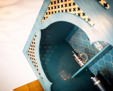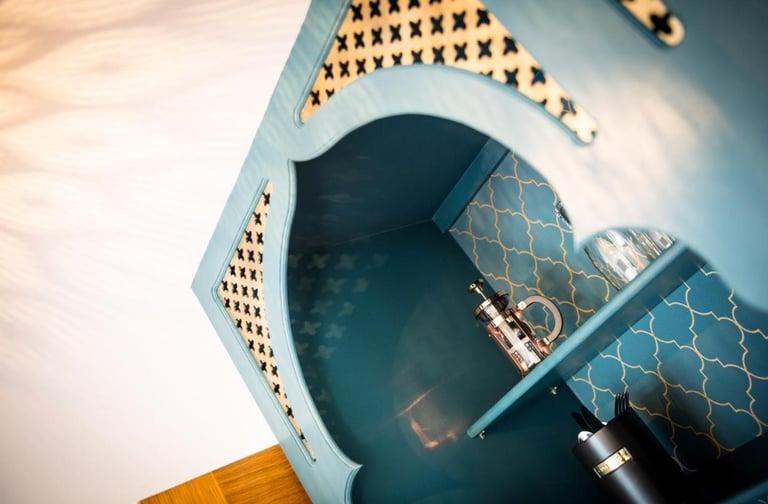 Beskpoke furniture made by the host, a local craftsman, offers distinctive character of this Cornish getaway.