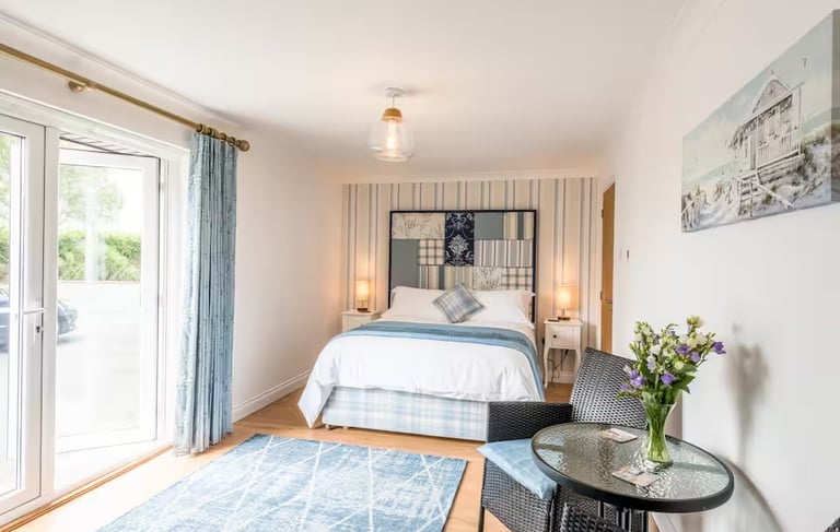 The bespoke furniture made by the host - a local craftsman - adds to the uniqueness of this Cornish retreat.This spacious room with carefully selected fabrics and furnishings offers a calm, relaxing, atmosphere.